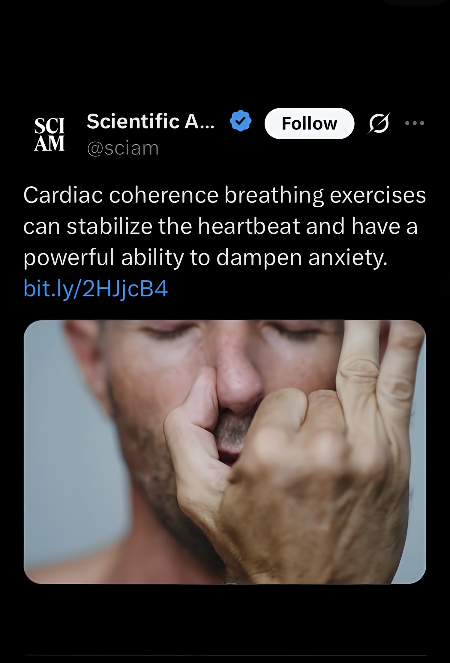 A photograph in Scientific American shows a man seated in profile, one hand closing a nostril while the other rests on his knee. The caption names the act “cardiac coherence breathing,” a method said to stabilise heart rhythm and reduce stress. The image appears unremarkable, its authority grounded in measurement and clinical neutrality. Yet the gesture is ancient.